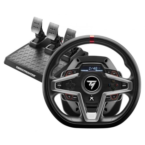 A T248 beépített képernyőjén több, mint 20 féle kijelző közül választhat: számos beállítást pedig maga állíthat (az erővisszacsatolás típusa, a kormány forgási szöge stb..), vagy az Ön által választott telemetriai információkat is megjeleníttetheti (fordulatszám, legjobb köridő stb..). A kompatibilis játékok listája PC és Xbox eszközökön megtalálható a Thrustmaster weboldalán, és ez folyamatosan frissül is.